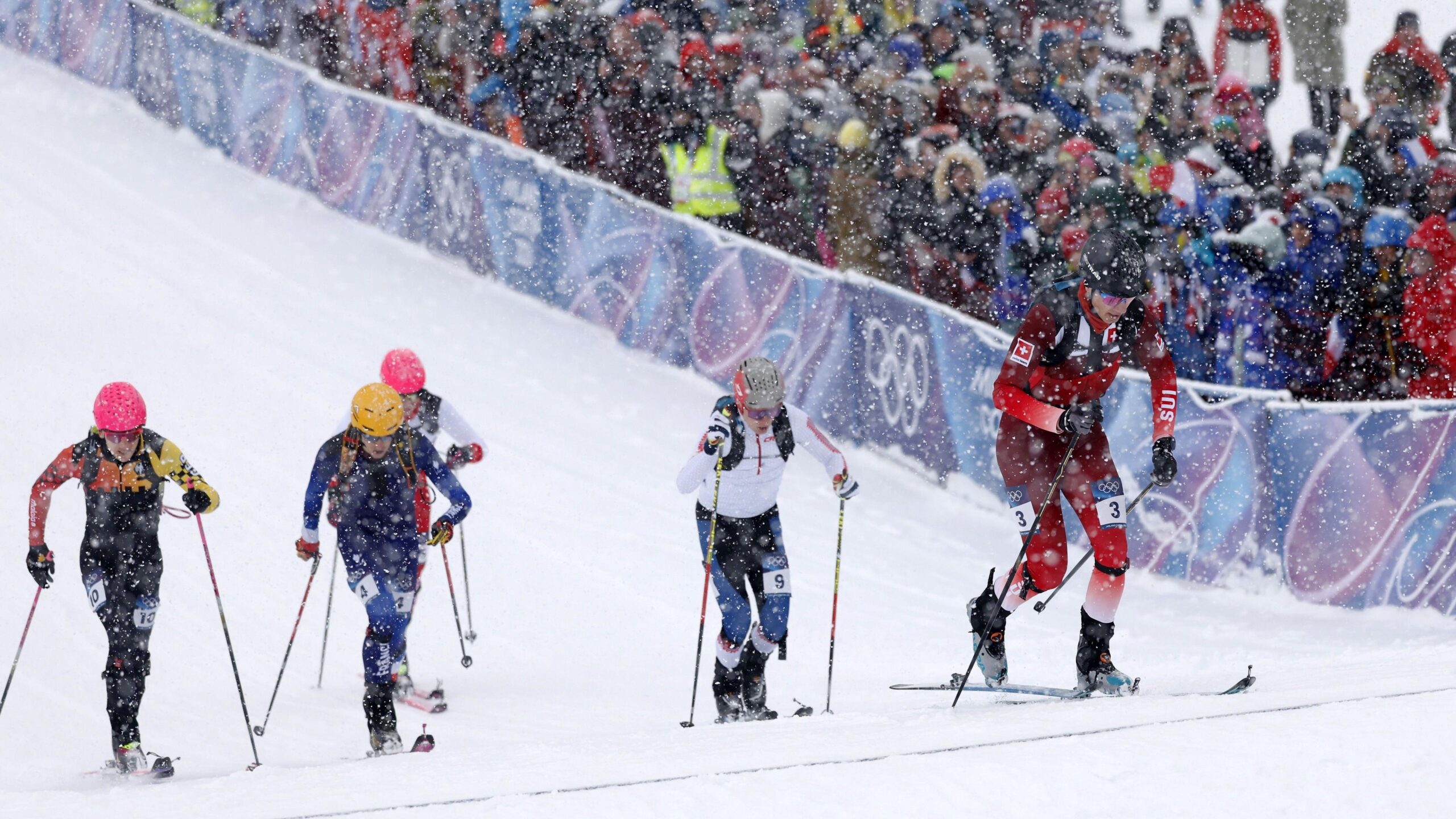 The new Winter Olympic sport of ski mountaineering – or skimo for short – made its highly anticipated debut on Thursday in blizzard conditions in Bormio.