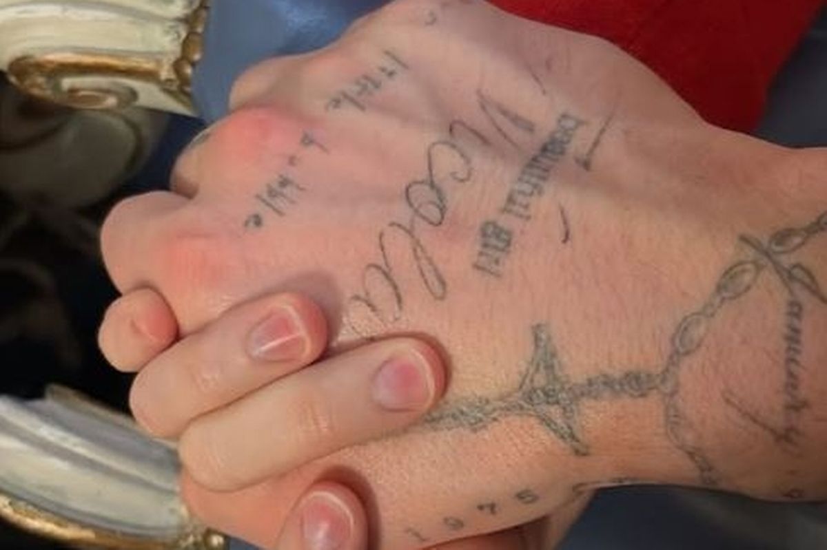 The son of David and Victoria Beckham shared a photo holding hands with his 30-year-old wife while celebrating the festive season with her billionaire parents in Miami, Florida. The name of his wife is also tattoed on his hand.