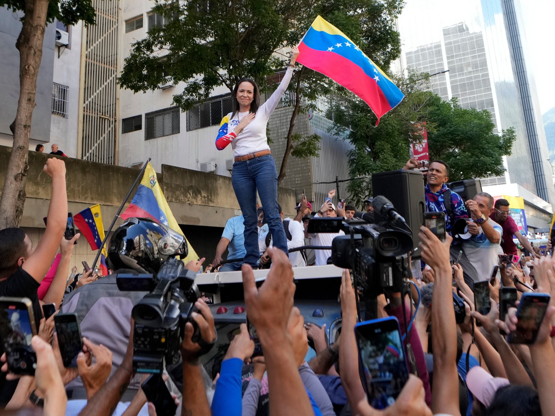She has accused Maduro of stealing the July 2024 election she was banned from standing in, despite having won the opposition’s primary by a landslide, a claim backed by much of the international community.