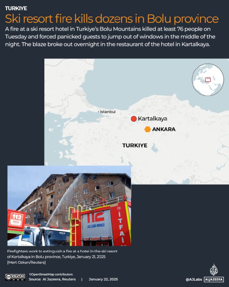The hotel’s general manager, Emir Aras, as well as Sedat Gulener, Bolu’s deputy mayor, and Ahmet Demir, the hotel’s director, were reportedly on the board of directors of the business that owned the Grand Kartal.