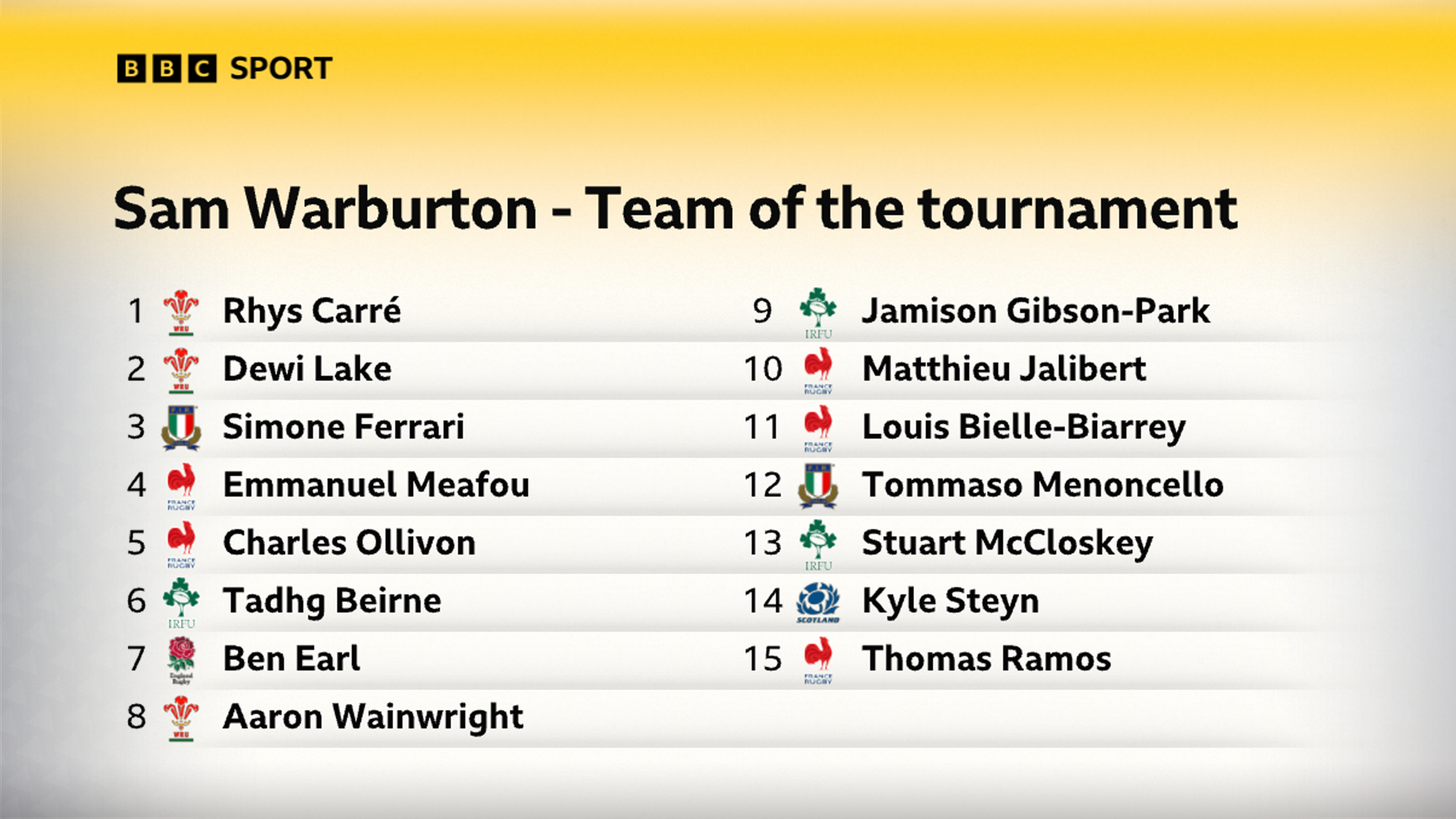 Despite lifting the trophy, France captain Antoine Dupont fails to make the cut at scrum-half, while only one Englishman is selected – and then only by former Wales captain Warbuton.